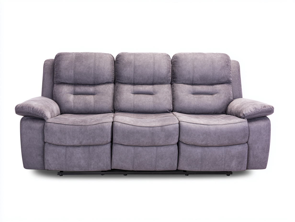 Recliner Sofa Upholstered Fabric 210x95x100 cm - Grey Purple - Manual Reclining Comfort Design
